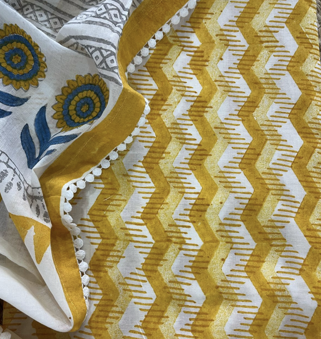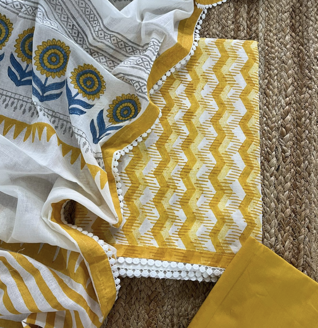 Super Soft Pure Cotton Hand Block Printed Kurtas & Dupattas Enhanced With Laces Paired With Cotton Lowers