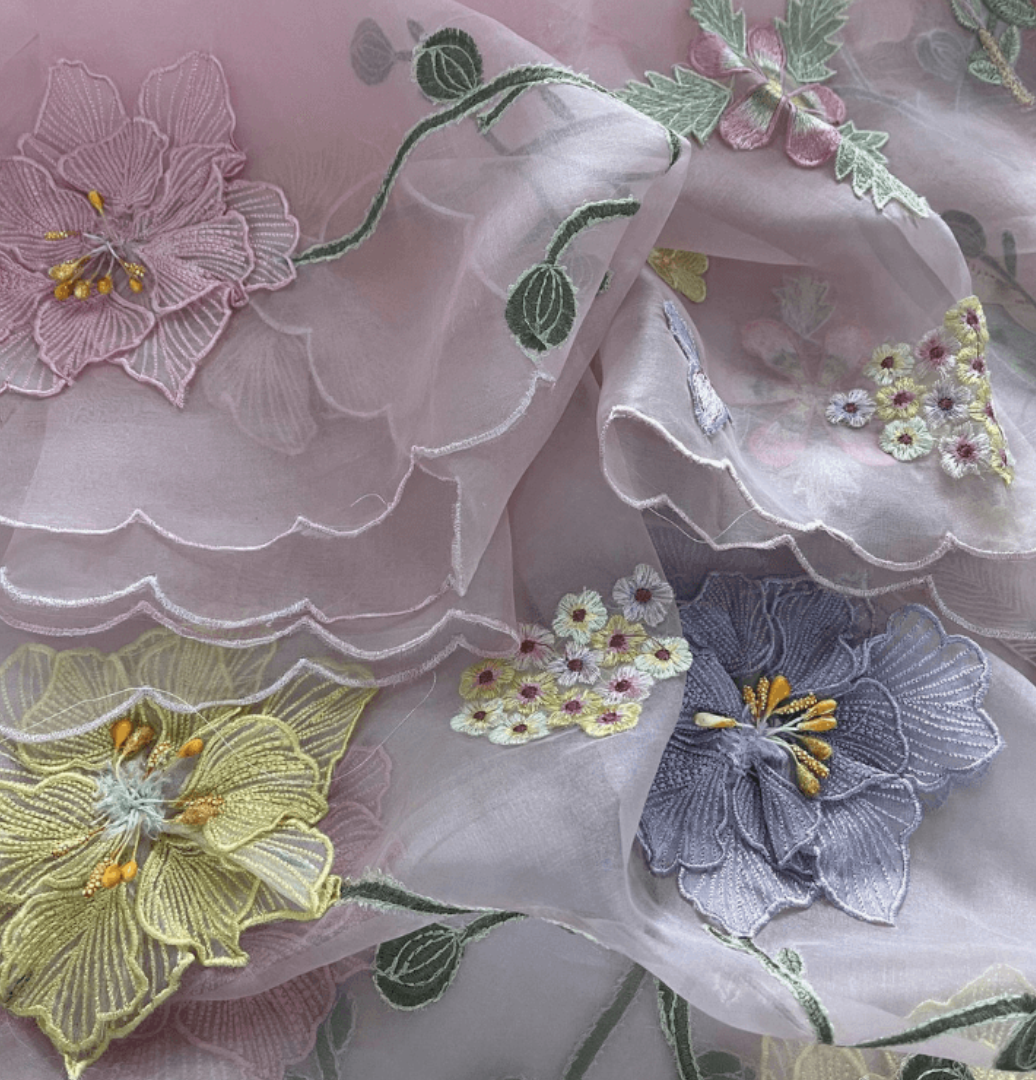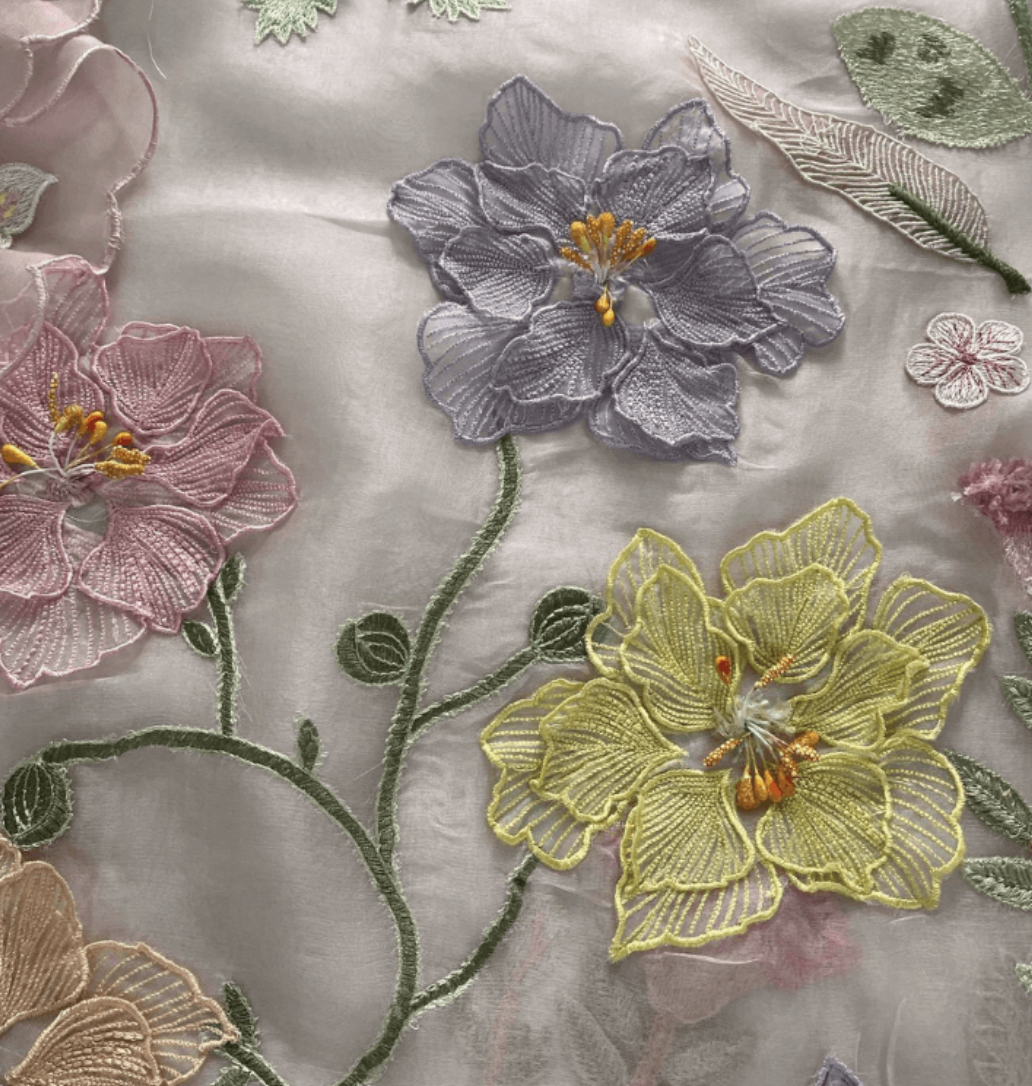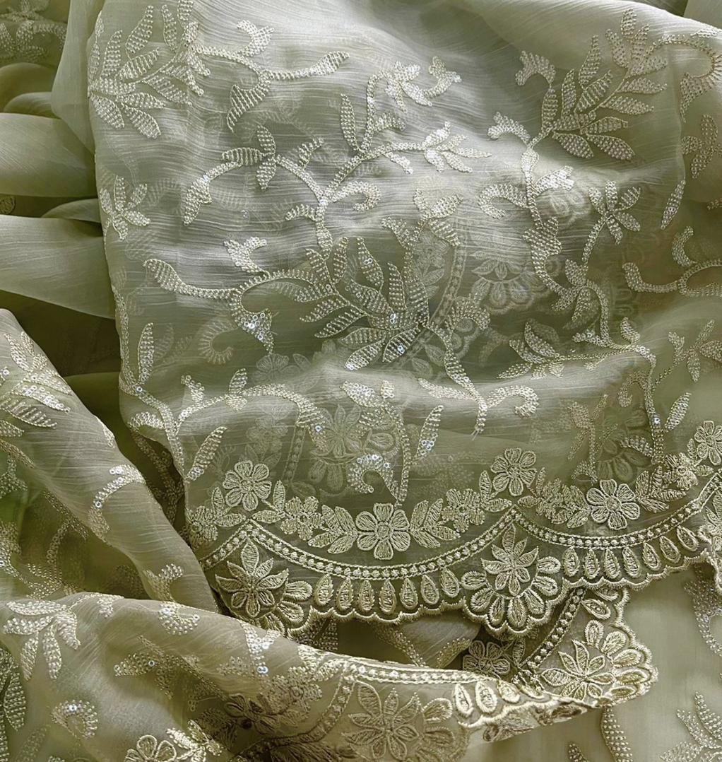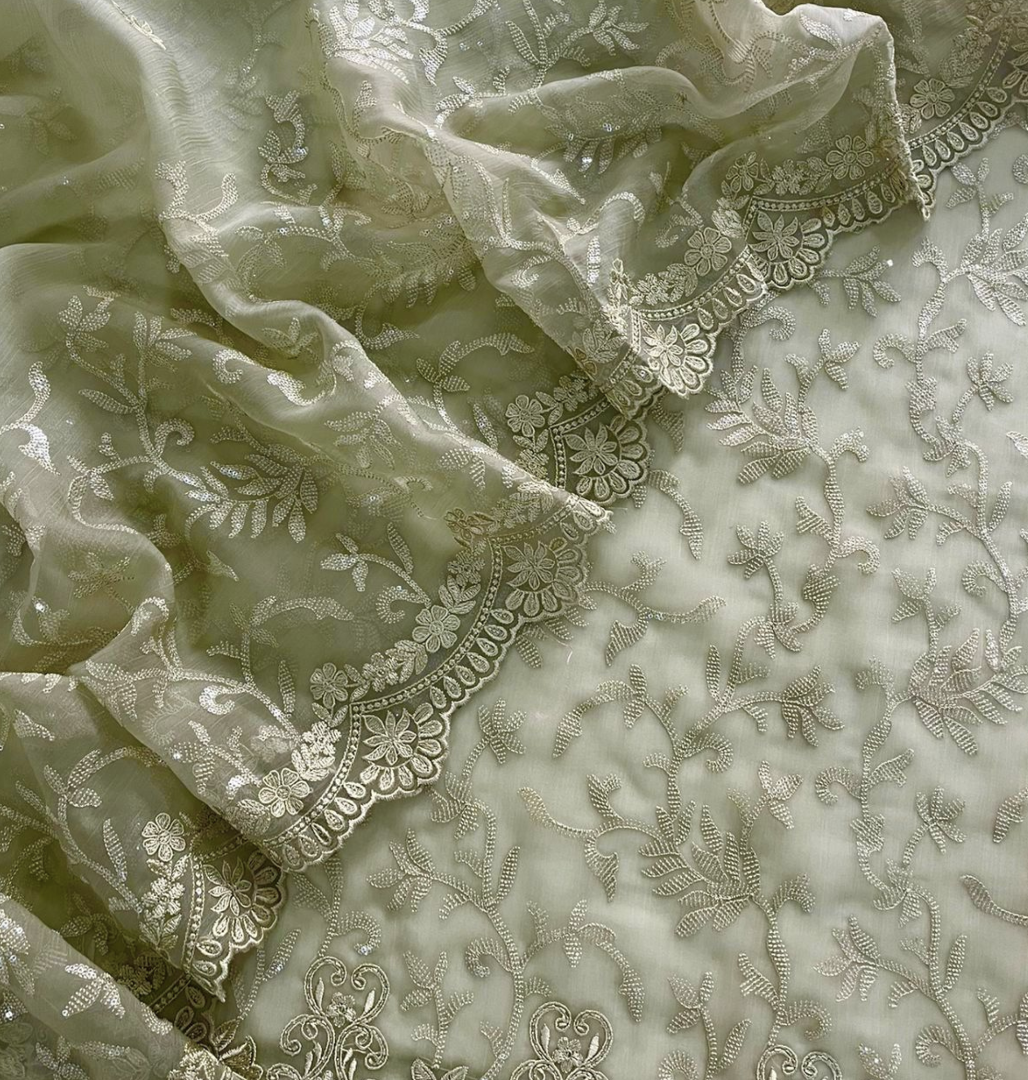 Pure Organza Silk Kurta & Dupatta adorned with intricate 3D Applique work & Parsi Embroidery along with Crepe Lowers