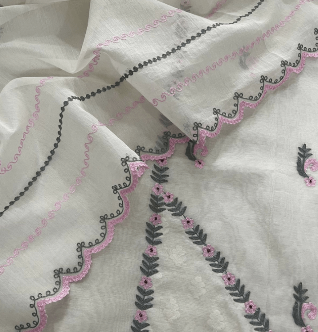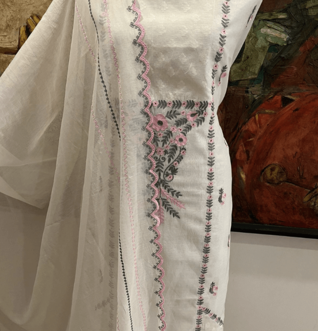 Graceful Pure Chanderi Kurta Dupatta having Floral Aari Embroidery along with soft cotton matching lower